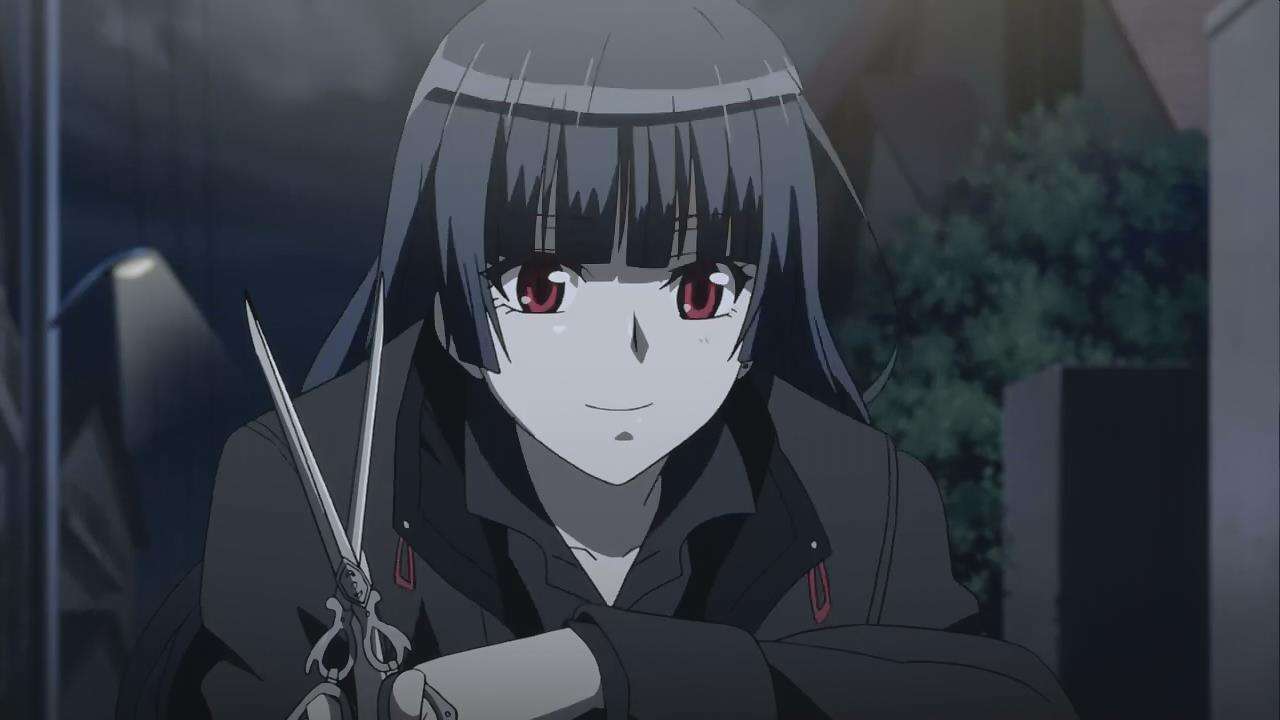 夏野雾姬,黑发黑服一身黑,手上常常拿着一把当武器用的剪刀,怎么看都是个危险的角色,常拿着剪刀威吓和人,而且有着毒舌兼抖S的性格。