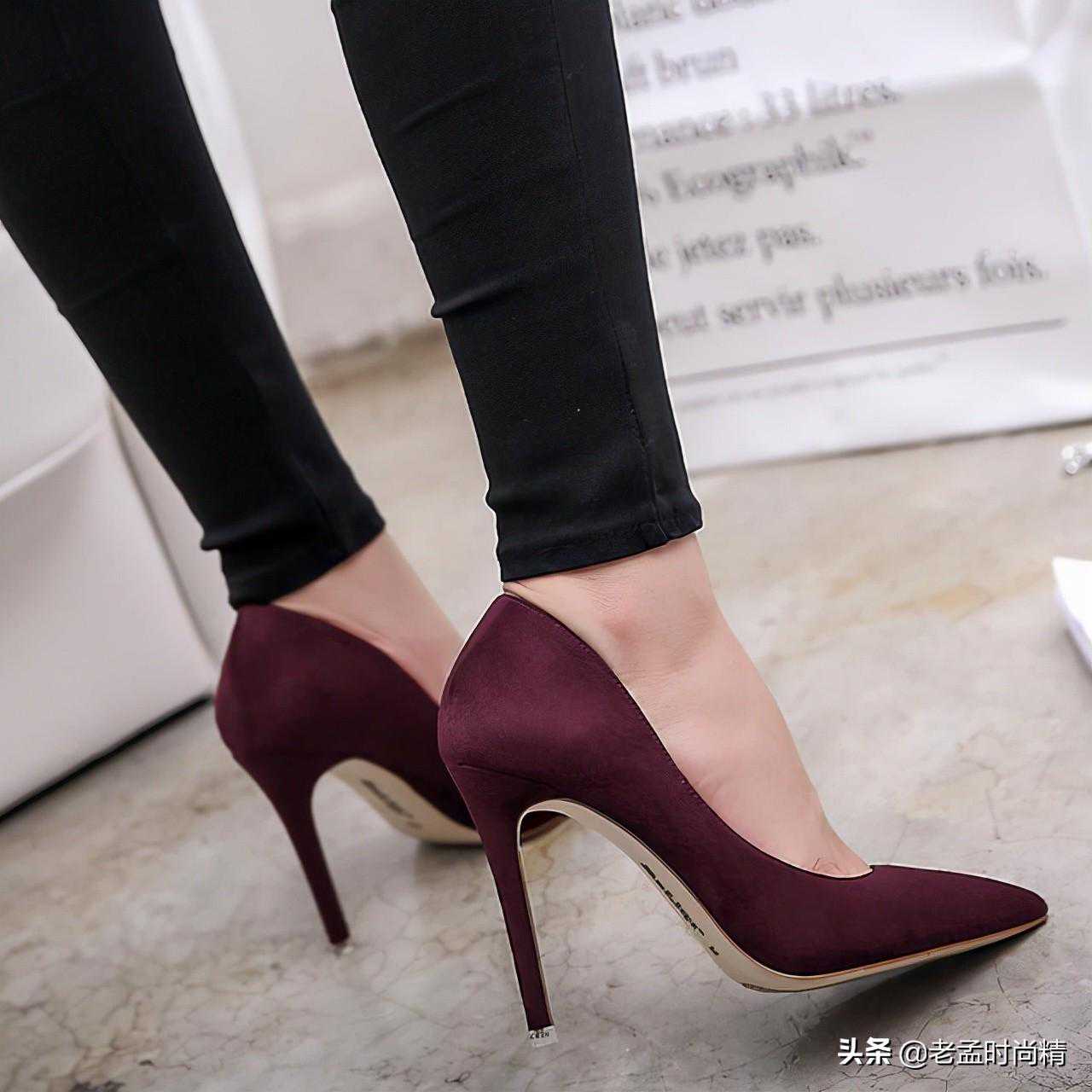 酒红色的高跟鞋,显出你高雅的气质,细跟更是非常的漂亮,性感,是职场女性必备的一双高跟鞋。