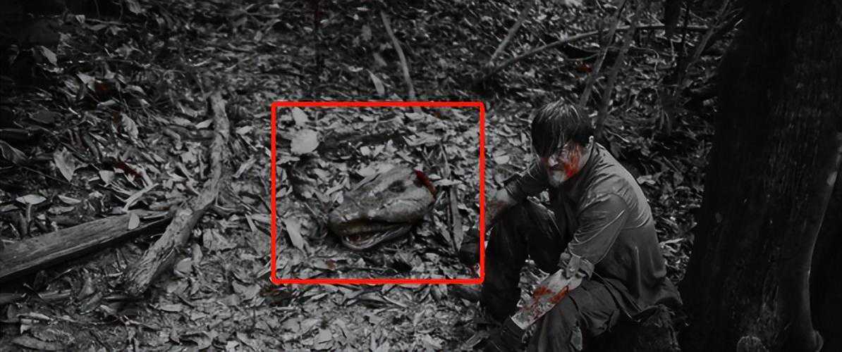 开头他找当地人当向导引路,向导坐地起价,他用0.001秒的时间给人家割了喉,接着把头砍下来扔到河里喂蛇。