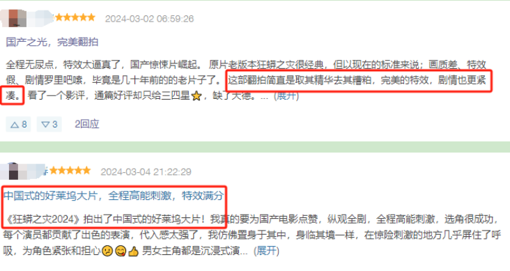 目前票房不错,再要是多夸几句,国产《狂蟒之灾》恐怕也要拍续集了。