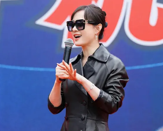 当孙俪穿着一身皮衣戴着墨镜,直接女强人一枚。
