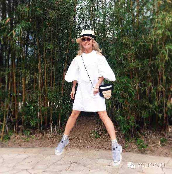 她的伙伴Dorothy用白色洋裙衬,亦清爽万分。