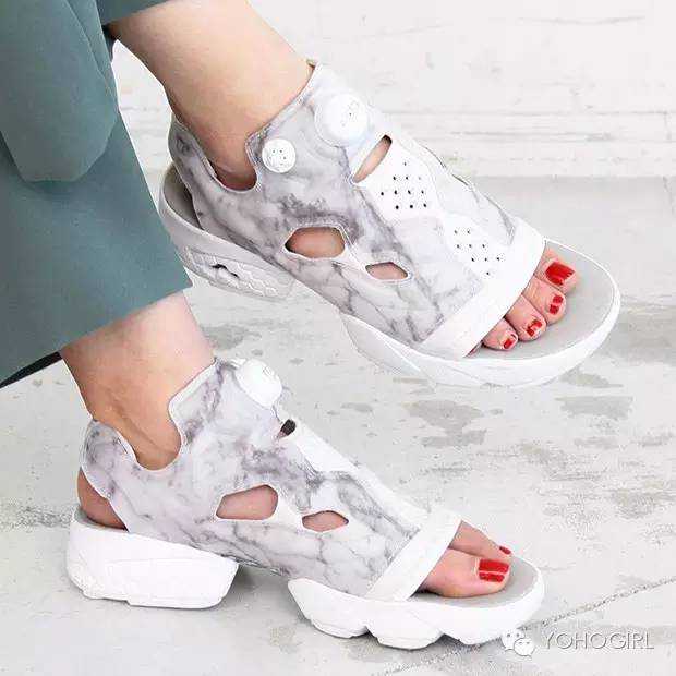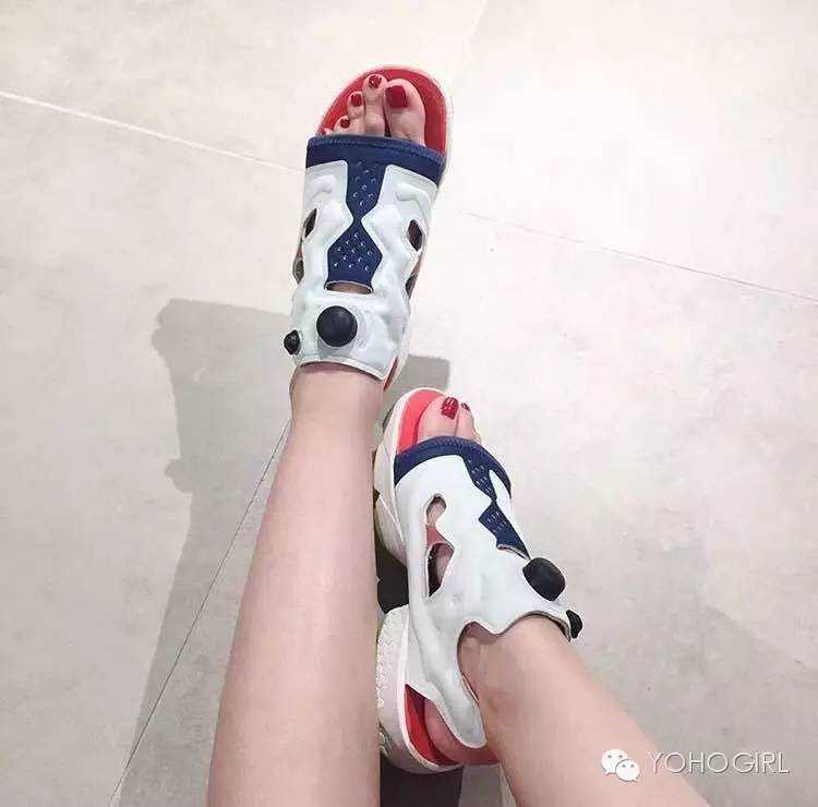 大叔涼鞋變時髦鞋,在時裝界沒有不可能的事。Reebok出涼鞋,竟然將經典PumpFury改裝,鞋款保留了Pump氣按鈕,因為變魚嘴部分,鞋尖由原來圓橢改成內尖更符合腳形,也鞋面擴闊了布料位,神改!