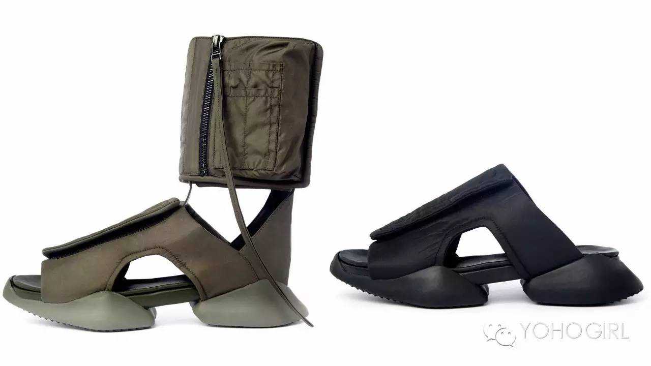 RickOwns与adidasOrignials合作无间,今季亦把标志性球鞋去头砍尾变成凉鞋,有高低筒,完全顾及暗黑迷感受。