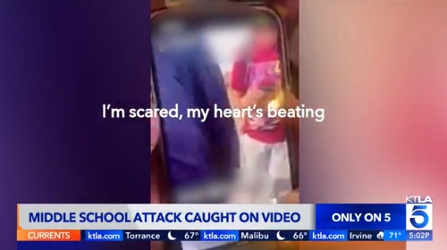 而在太平洋彼岸,校园暴力也在继续。为了争夺一名男生,南加一名6年级女学生遭到另一女同学的残忍袭击,而其他学生则站在一旁拍摄。