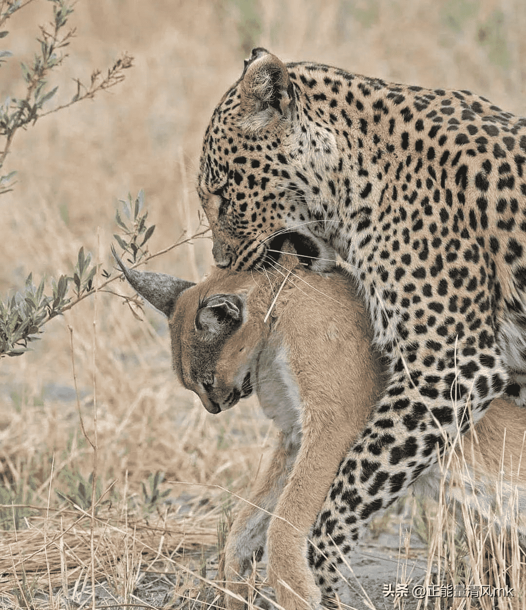 花豹欲捕杀羚羊,却阴差阳错杀死狞猫