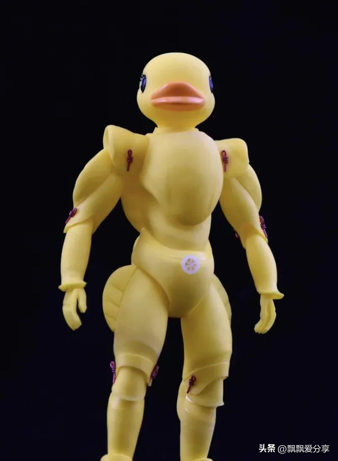 一位日本艺术家将7只橡皮鸭剪下的碎片拼接在一起,创造了一个可动的人偶。