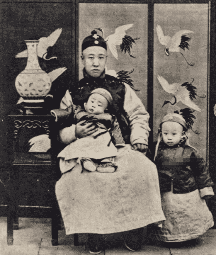 醇亲王载沣和两个儿子的合影