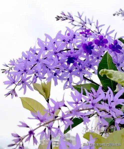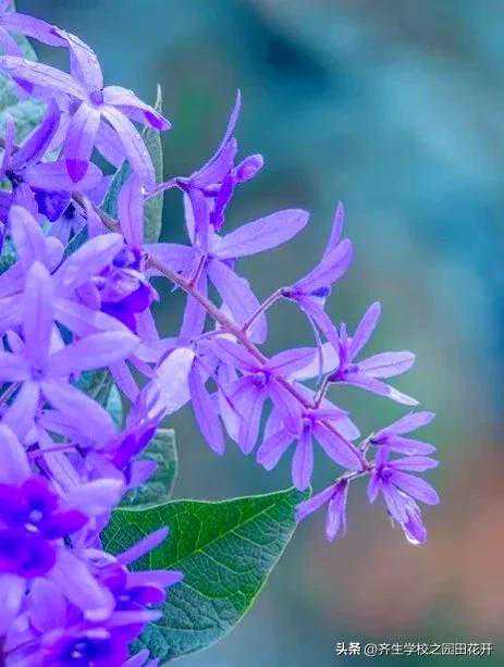 蓝花藤。又名紫霞藤、紫绒花、许愿藤。马鞭草科,蓝花藤属木质藤本。
