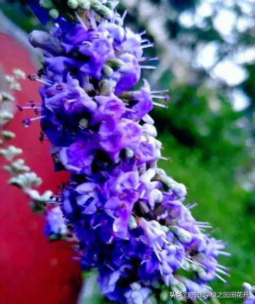 花色有浅紫色,浅蓝色,粉紫色,但以浅紫色与粉紫色最为漂亮。花冠蓝紫色,花朵密集,唇状,长约4~5cm,串串紫蓝,艳而不俗。每年5月~10月中旬可花开两次,其中6月中下旬花开最盛。