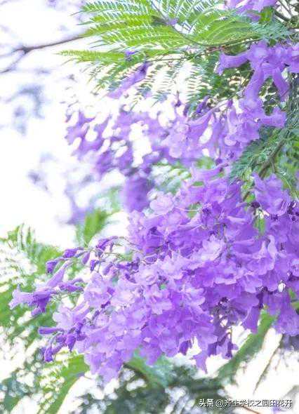 蓝花楹。又名蓝雾树,紫云木。紫葳科,蓝花楹属,高大落叶乔木。中乔或者大乔木,著名的园林景观设计观花植物,十大园景树之一。
